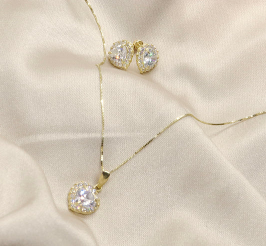 14k Yellow Gold, CZ Pear Cut Diamond Necklace and Earrings Set